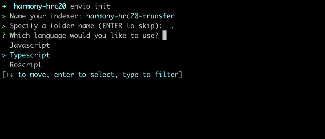 > Note: Indexers on Envio can be written in JavaScript, TypeScript, or ReScript. For this demonstration, we’ve chosen to use TypeScript as the preferred language.