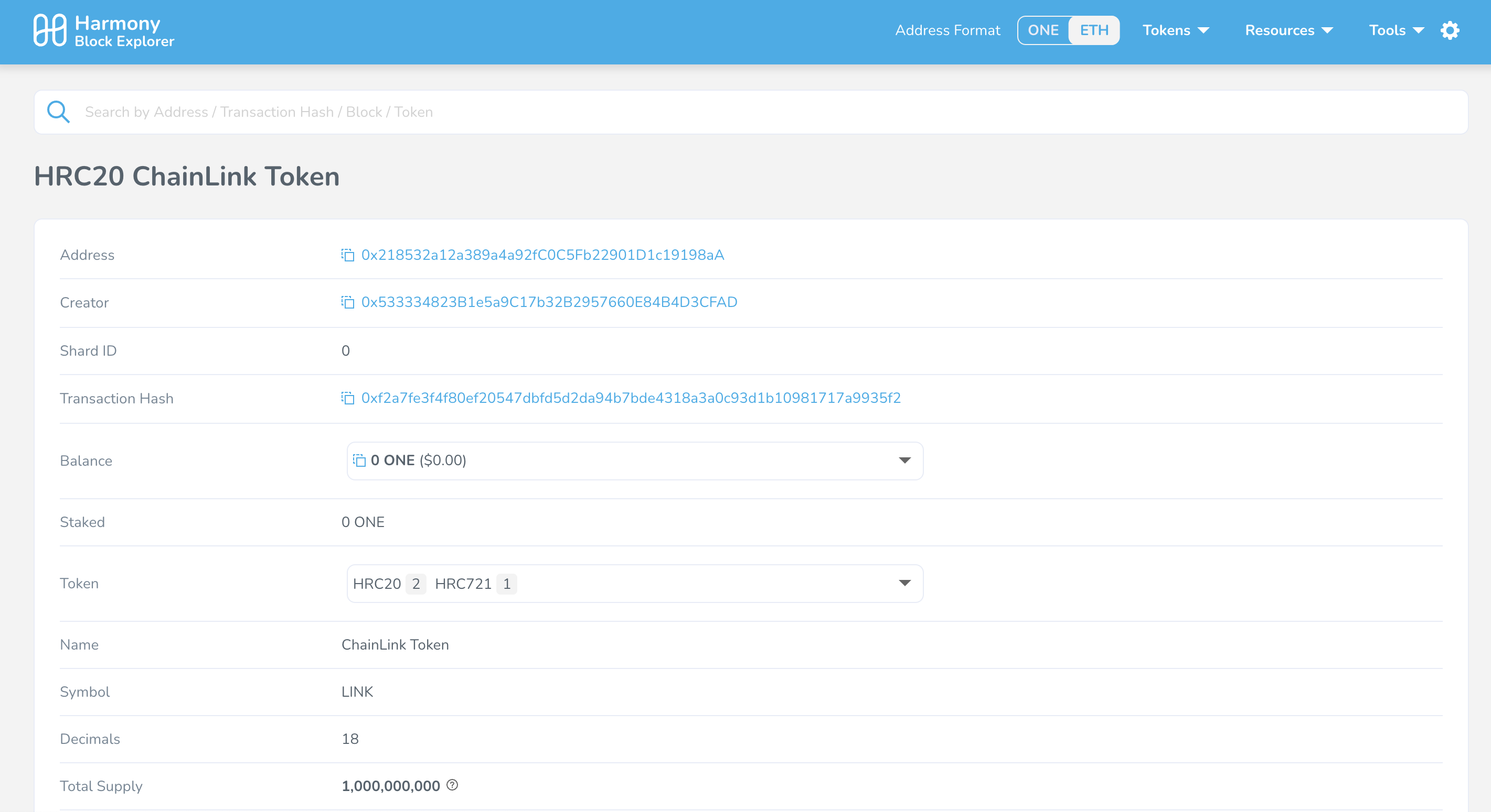 LINK Token Contract address: [0x218532a12a389a4a92fc0c5fb22901d1c19198aa](https://explorer.harmony.one/address/0x218532a12a389a4a92fc0c5fb22901d1c19198aa)